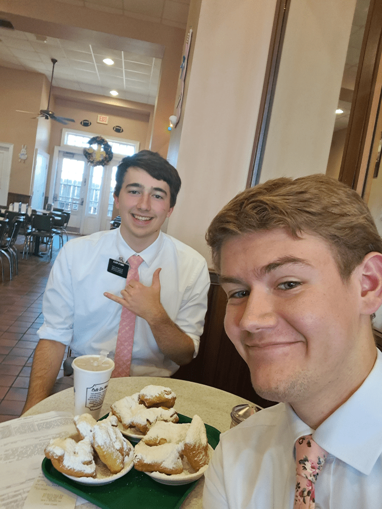 We finished the exchange then me and Elder Stubbs had beignets after we had maintenance done on our car.