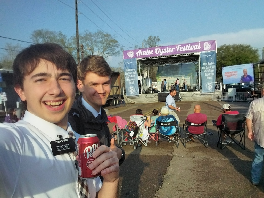 We were under tornado watch in the morning but it cleared up so we got to go to the oyster festival where I had some charbroiled oyster. It was good 8/10. Me and Elder Stubbs also got called Bible salesmen which is a new one for me.
